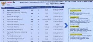 Tabel highlight capaian 2024 repormasi, birokrasi, skip, spbe, dan berakhlak se-Provinsi Jambi.